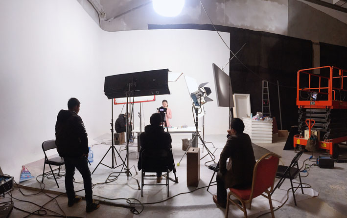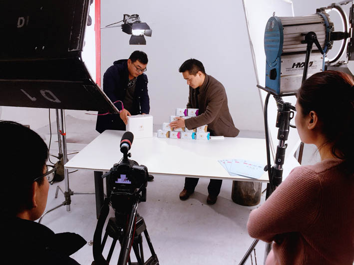 其實(shí)產(chǎn)品宣傳片制作最離不開的就是燈光了。此時(shí)我們的燈光師已經(jīng)布光完畢,剩下的就是微調(diào)了。